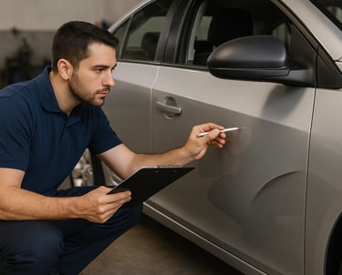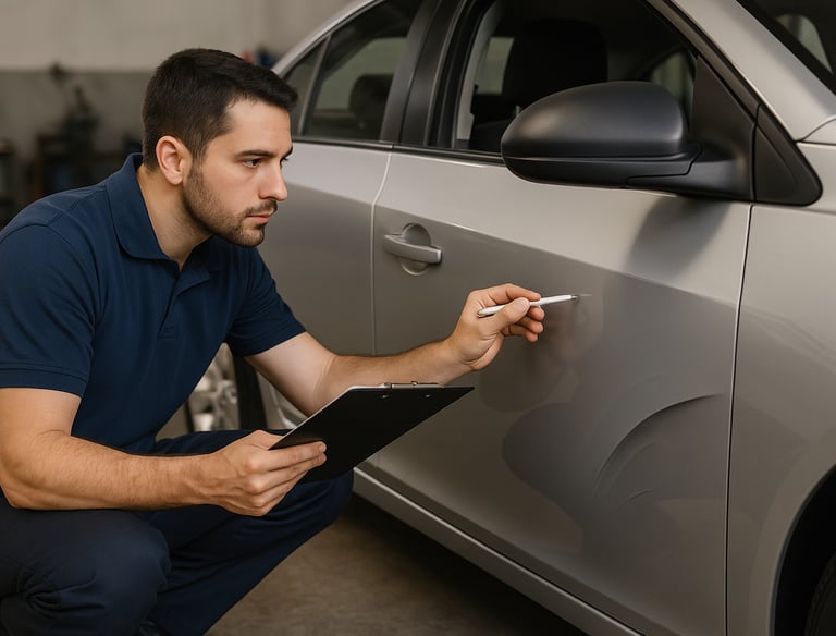 Inspección detallada del exterior e interior del vehículo, identificando posibles daños, reparaciones previas o desgaste anormal.